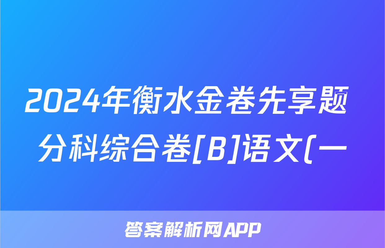 2024年衡水金卷先享题 分科综合卷[B]语文(一)1答案正在持续更新,本期2024-2025全国100所名校答案网为大家整理了相关试题及答案,供大家查缺补漏,高效提升成绩。
