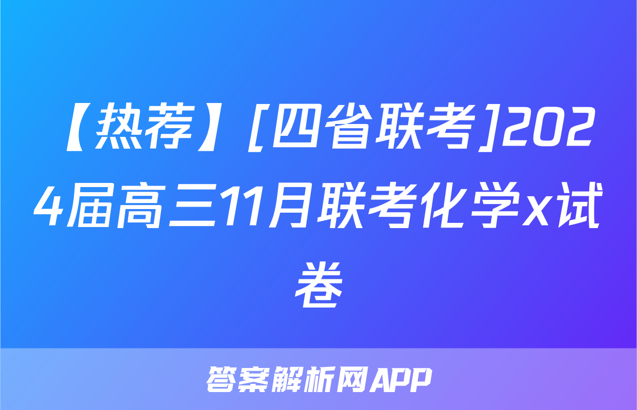 4、42024届湖南天壹名校联盟高三11月大联考化学试卷答案