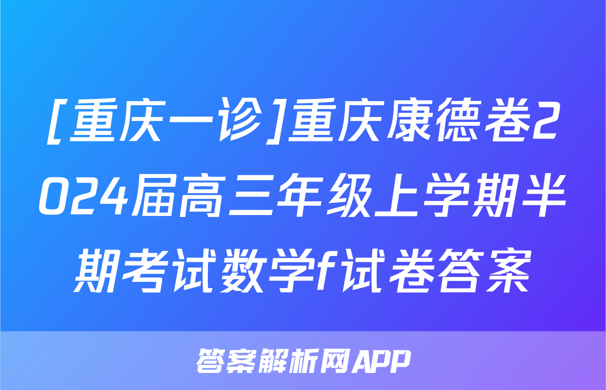 1、重庆市康德2024年普通高等学校招生全国统一考试11月调研测试卷数学f试卷答案