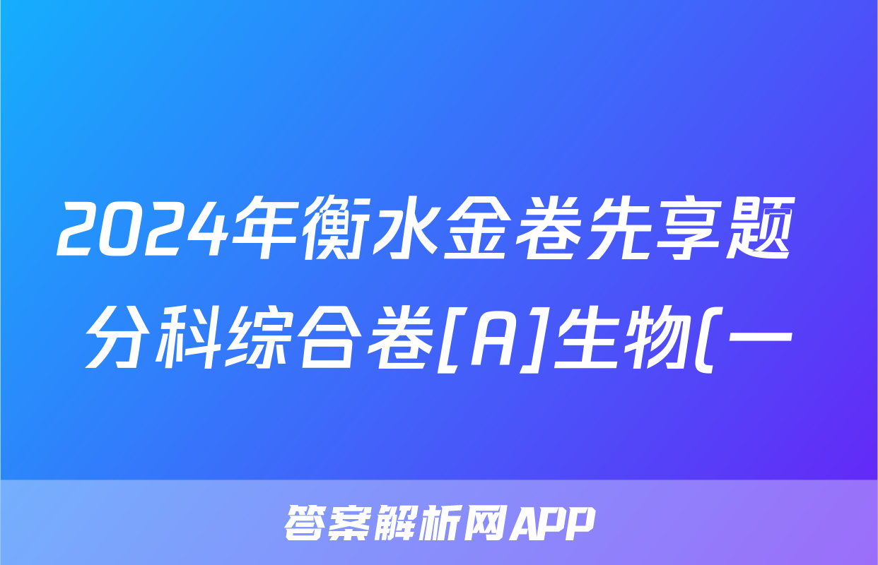 3、2023-2024衡水金卷先享题专项提分卷答案生物
