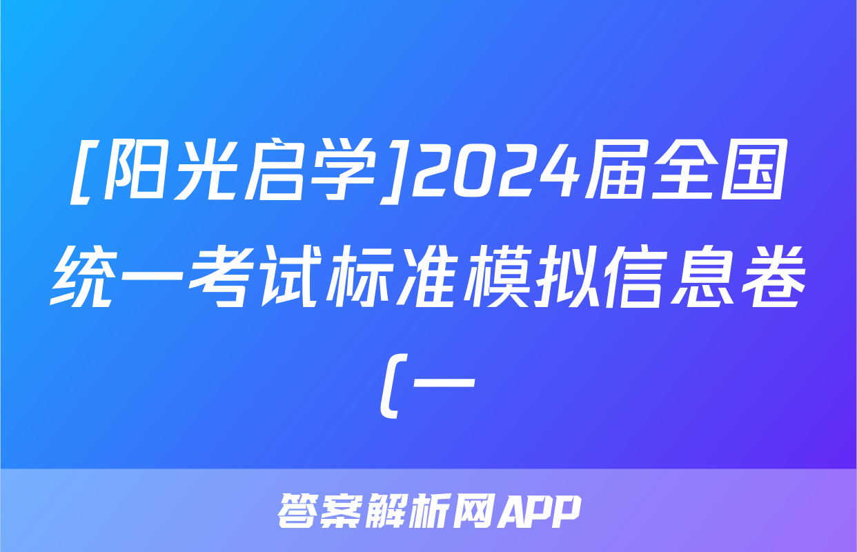 [阳光启学]2024届全国统一考试标准模拟信息卷(一)1语文LL试题正在持续更新,本期2024-2025全国100所名校答案网为大家整理了相关试题及答案,供大家查缺补漏,高效提升成绩。