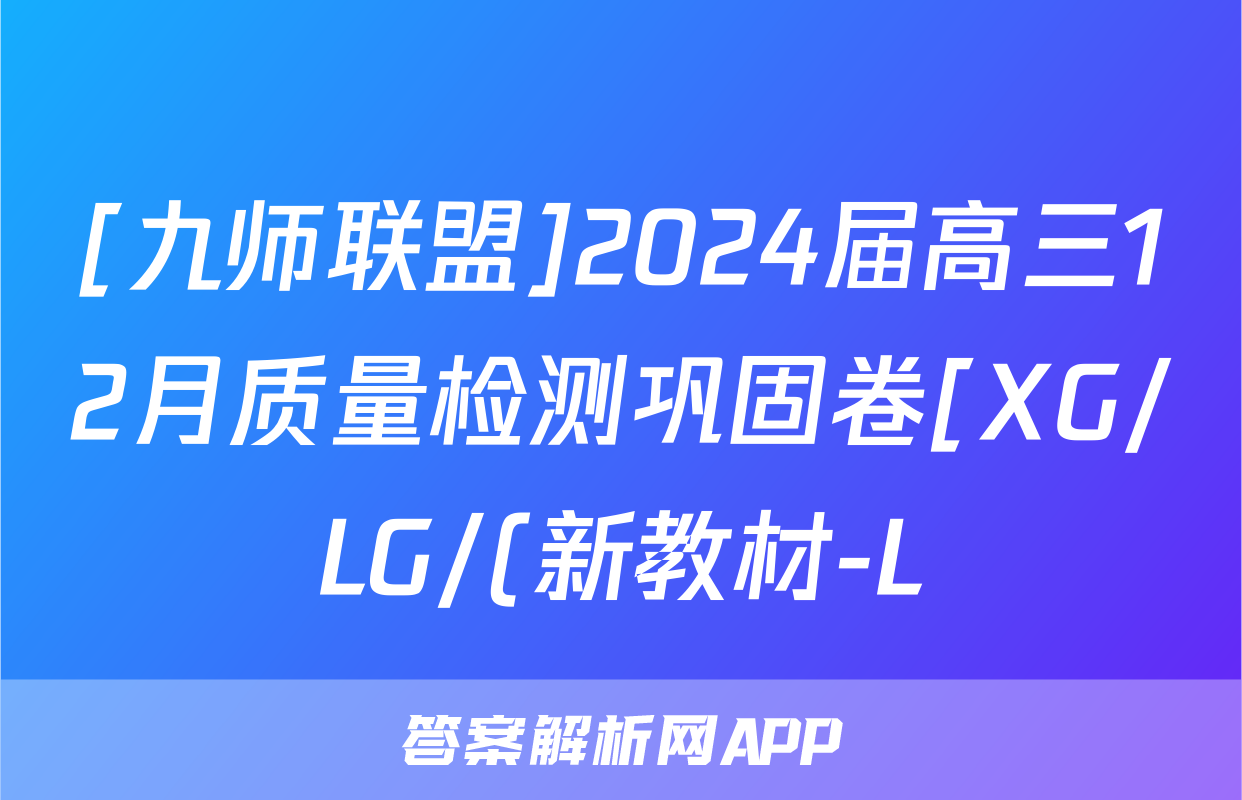 [九师联盟]2024届高三12月质量检测巩固卷[XG/LG/(新教材-L)G]语文XG答案正在持续更新,本期2024-2025全国100所名校答案网为大家整理了相关试题及答案,供大家查缺补漏,高效提升成绩。