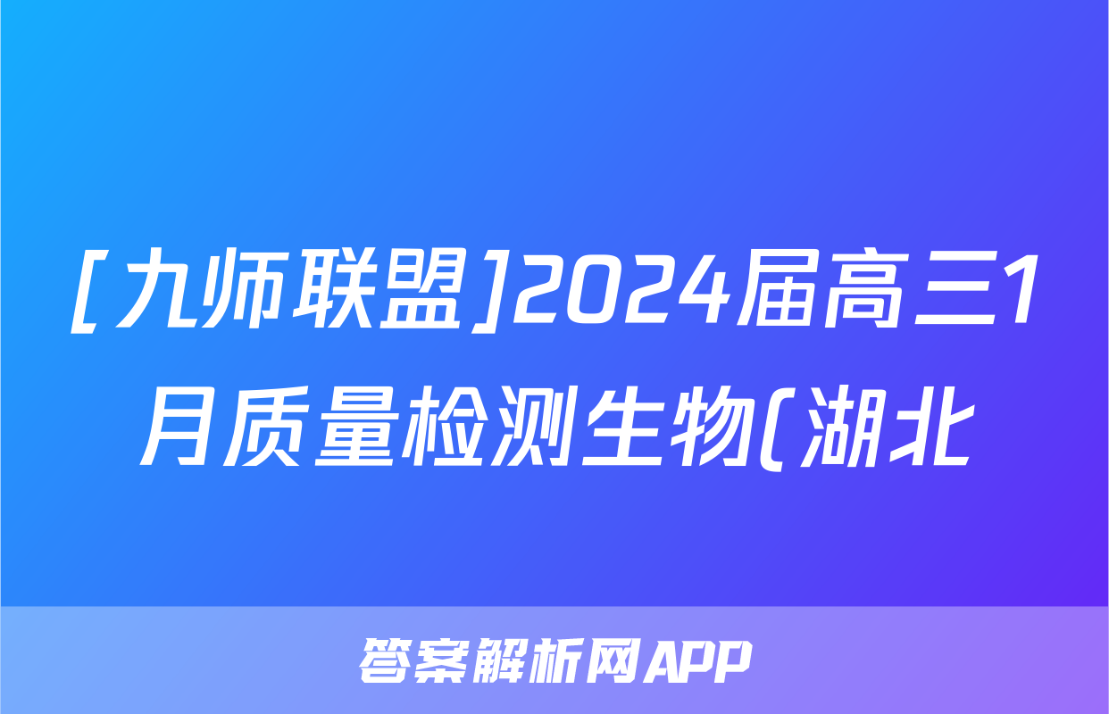 8、2023-2024九师联盟高三10月质量检测答案生物