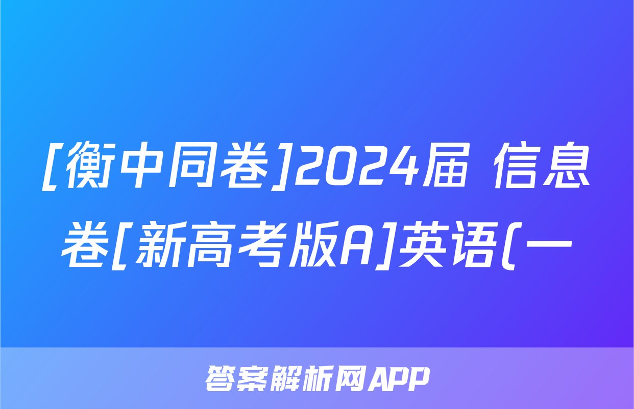 [衡中同卷]2024届 信息卷[新高考版A]英语(一)1答案正在持续更新,本期2024-2025全国100所名校答案网为大家整理了相关试题及答案,供大家查缺补漏,高效提升成绩。