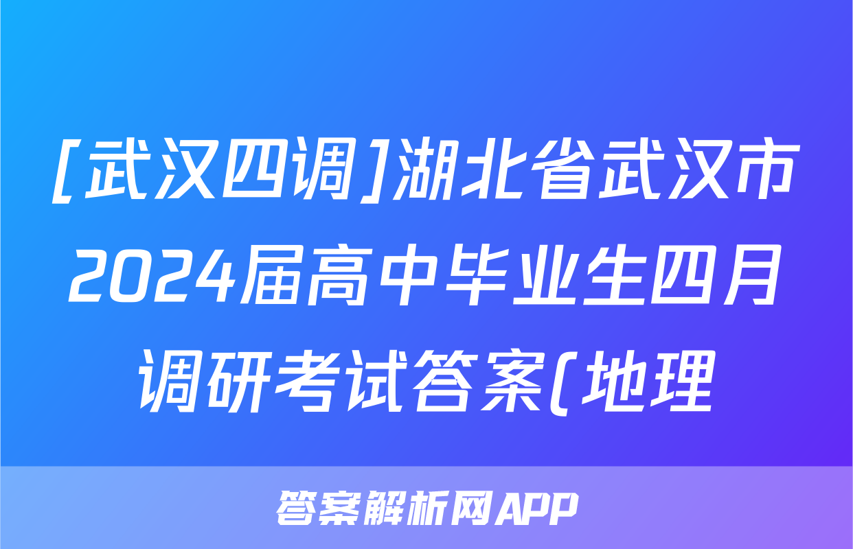 1、[武汉二调]湖北省武汉市2024届高中毕业生二月调研考试地理答案