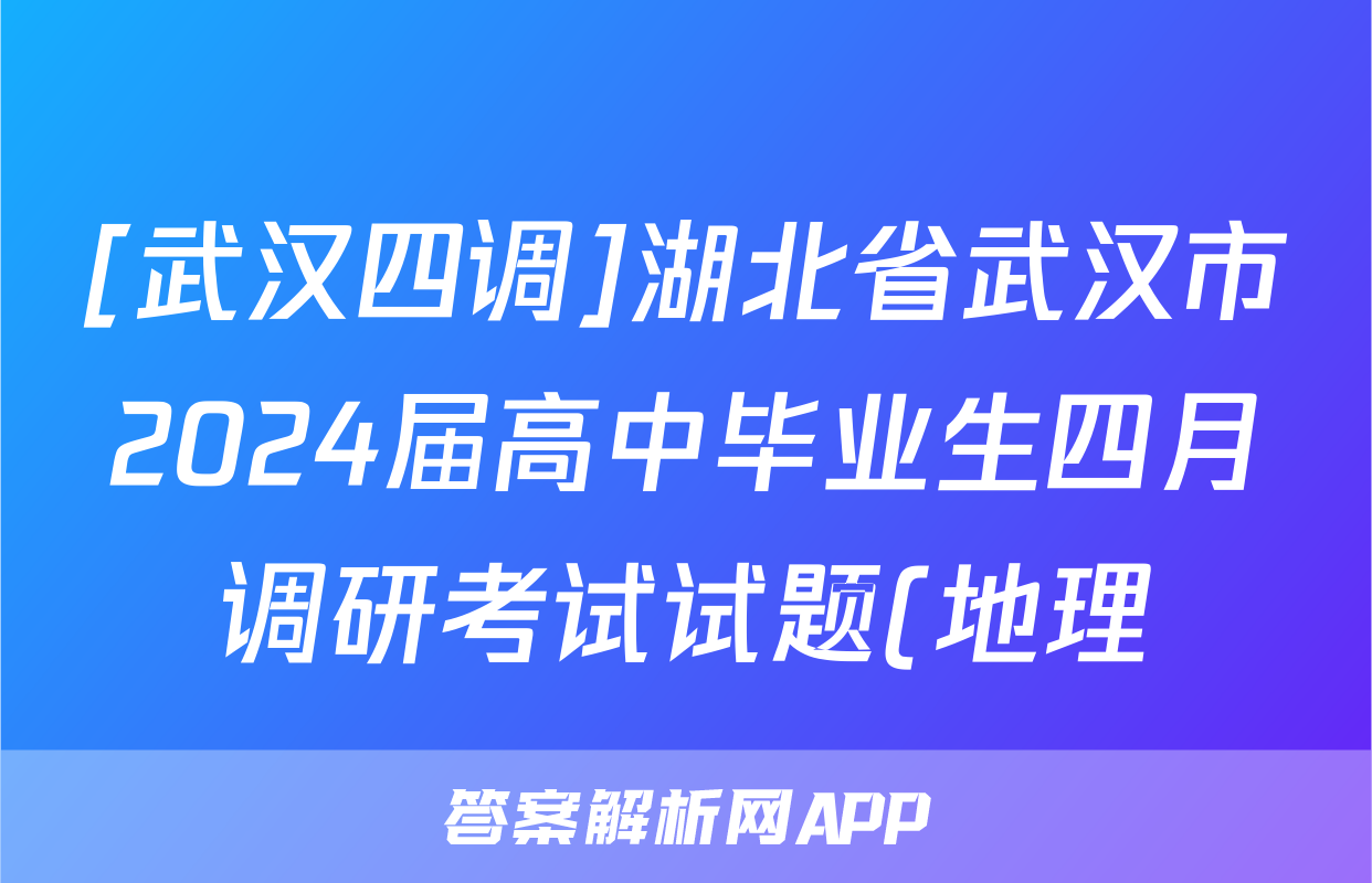 3、武汉市部分重点中学2023-2024学年度高一上学期期末联考地理试题