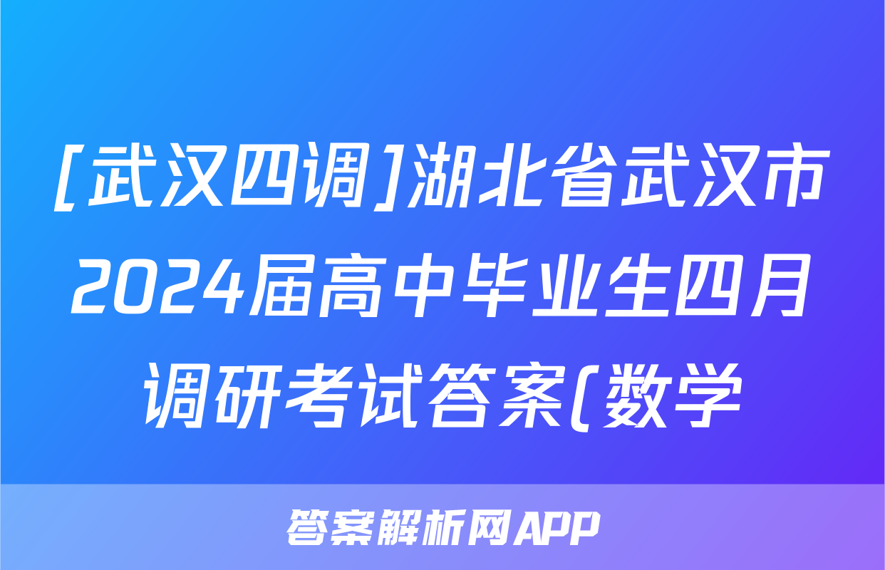 2、武汉市4月调考数学2024