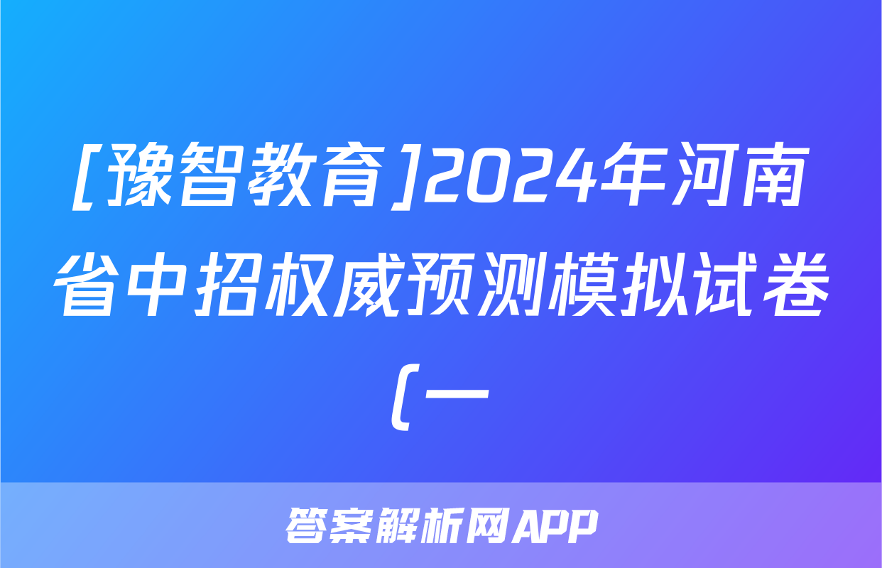 [豫智教育]2024年河南省中招权威预测模拟试卷(一)1历史试题正在持续更新,本期2024-2025全国100所名校答案网为大家整理了相关试题及答案,供大家查缺补漏,高效提升成绩。