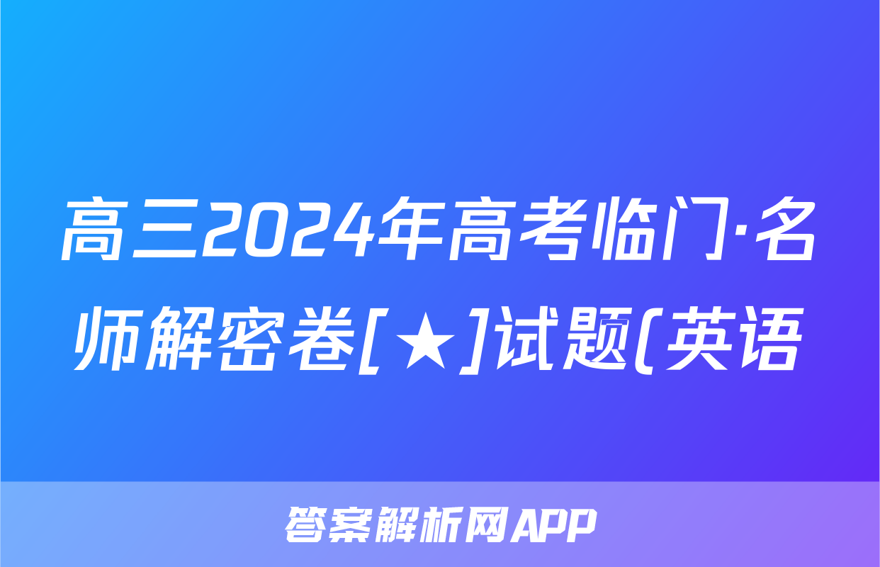 高三2024年高考临门·名师解密卷[★]试题(英语)正在持续更新,本期2024-2025全国100所名校答案网为大家整理了相关试题及答案,供大家查缺补漏,高效提升成绩。