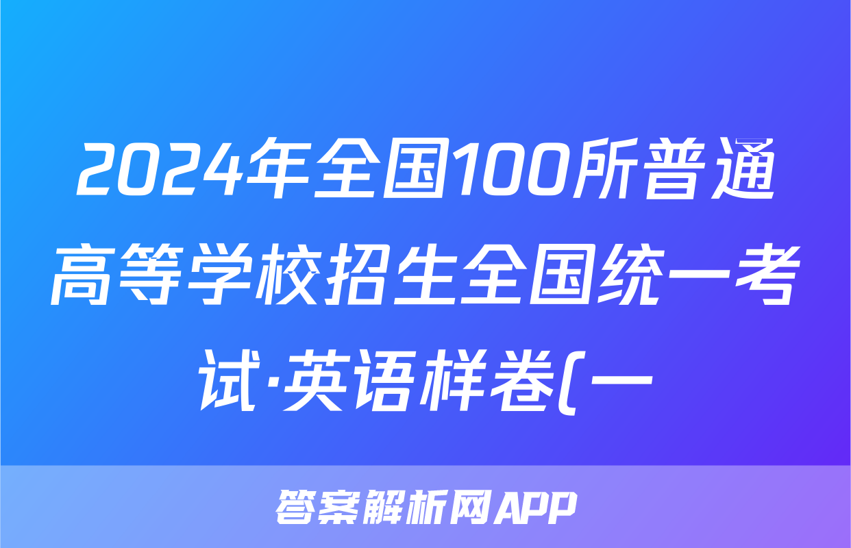 1[24·(新高考)高考样卷·英语·Y]试题)