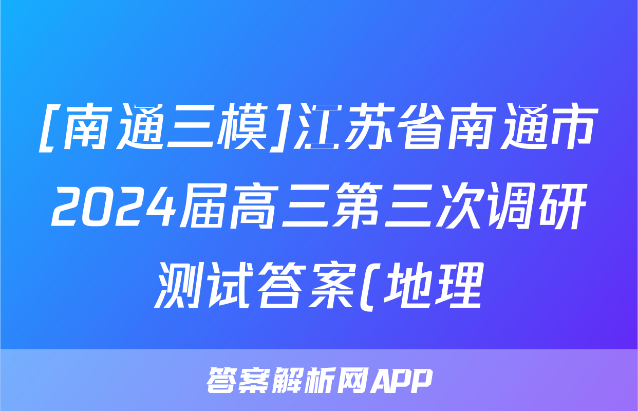2、南通2024三模地理