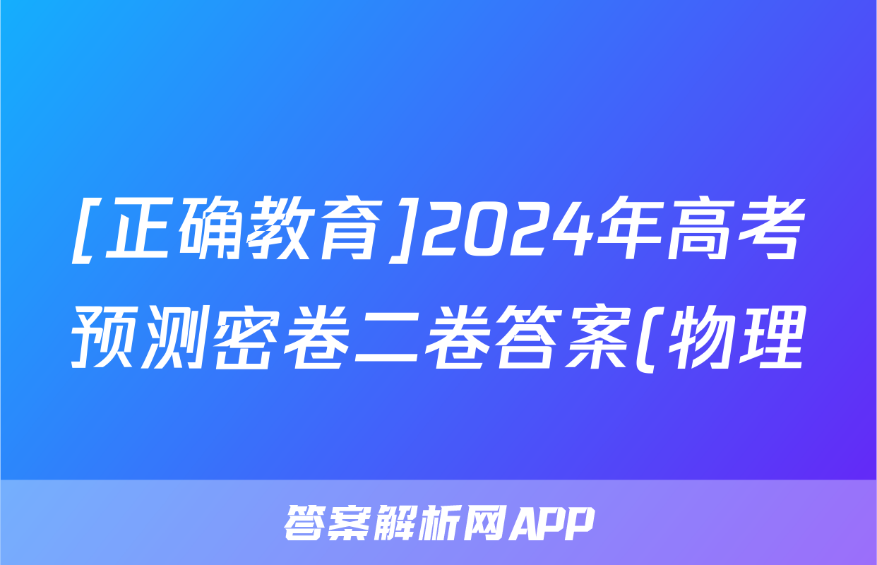 1、正确教育 2024年高考预测密卷二卷答案(物理)