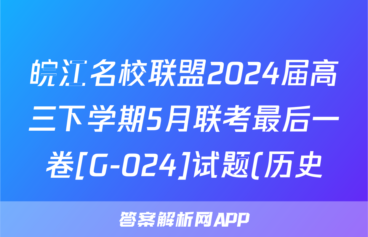 1、皖江名校联盟2024届高三下学期5月联考最后一卷[G-024]试题(地理)