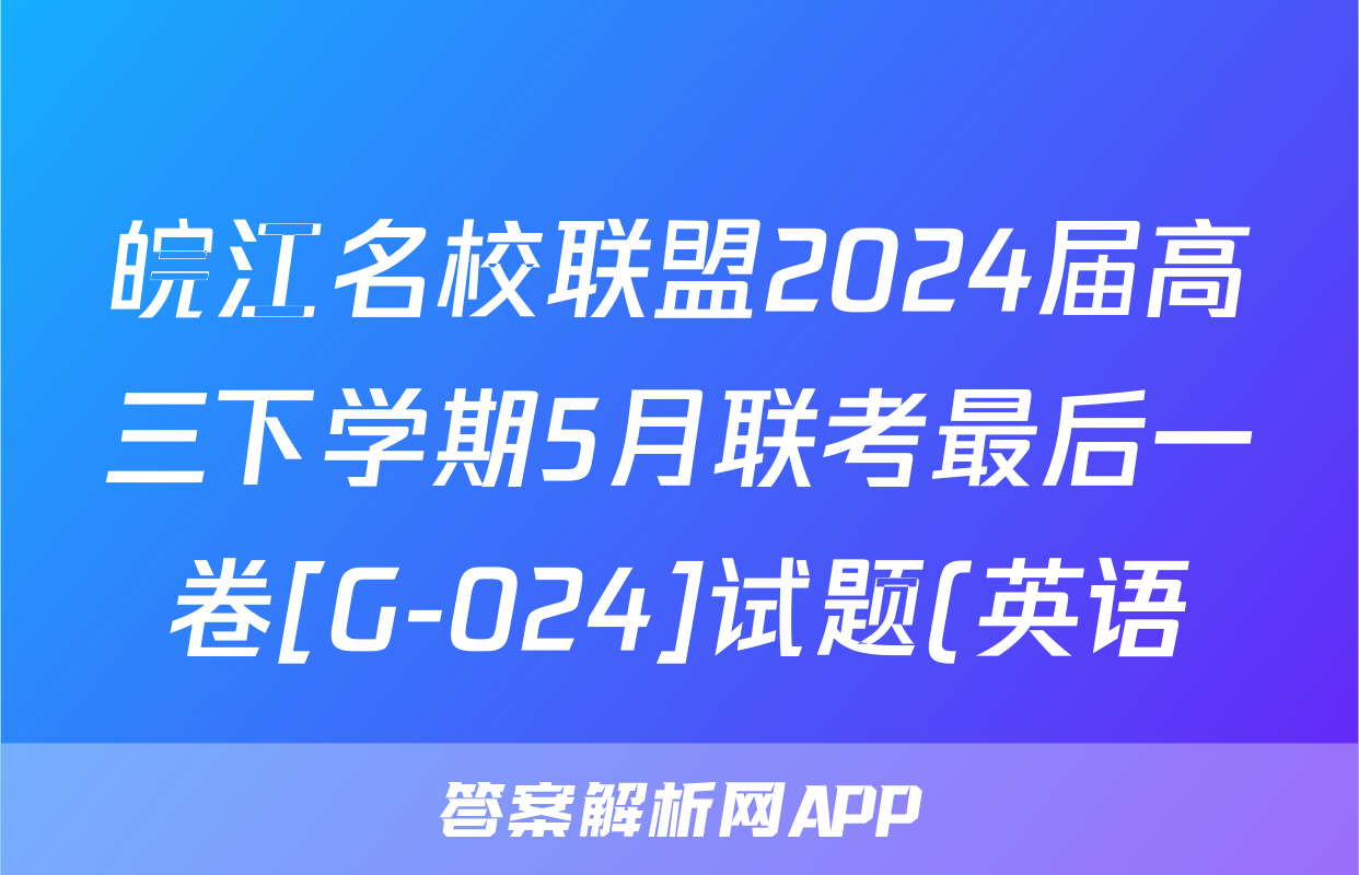 1、皖江名校联盟2024届高三下学期5月联考最后一卷[G-024]试题(政治)