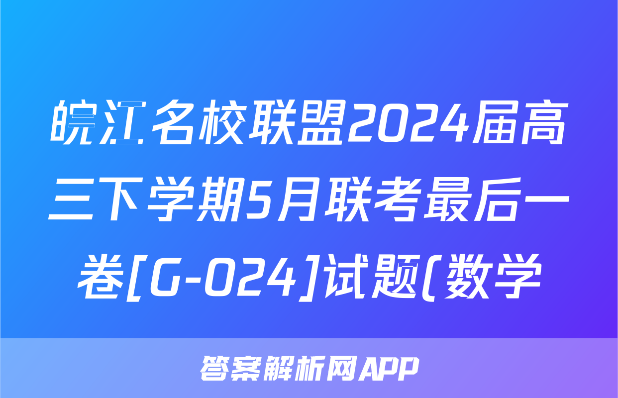 1、皖江名校联盟2024届高三下学期5月联考最后一卷[G-024]试题(政治)