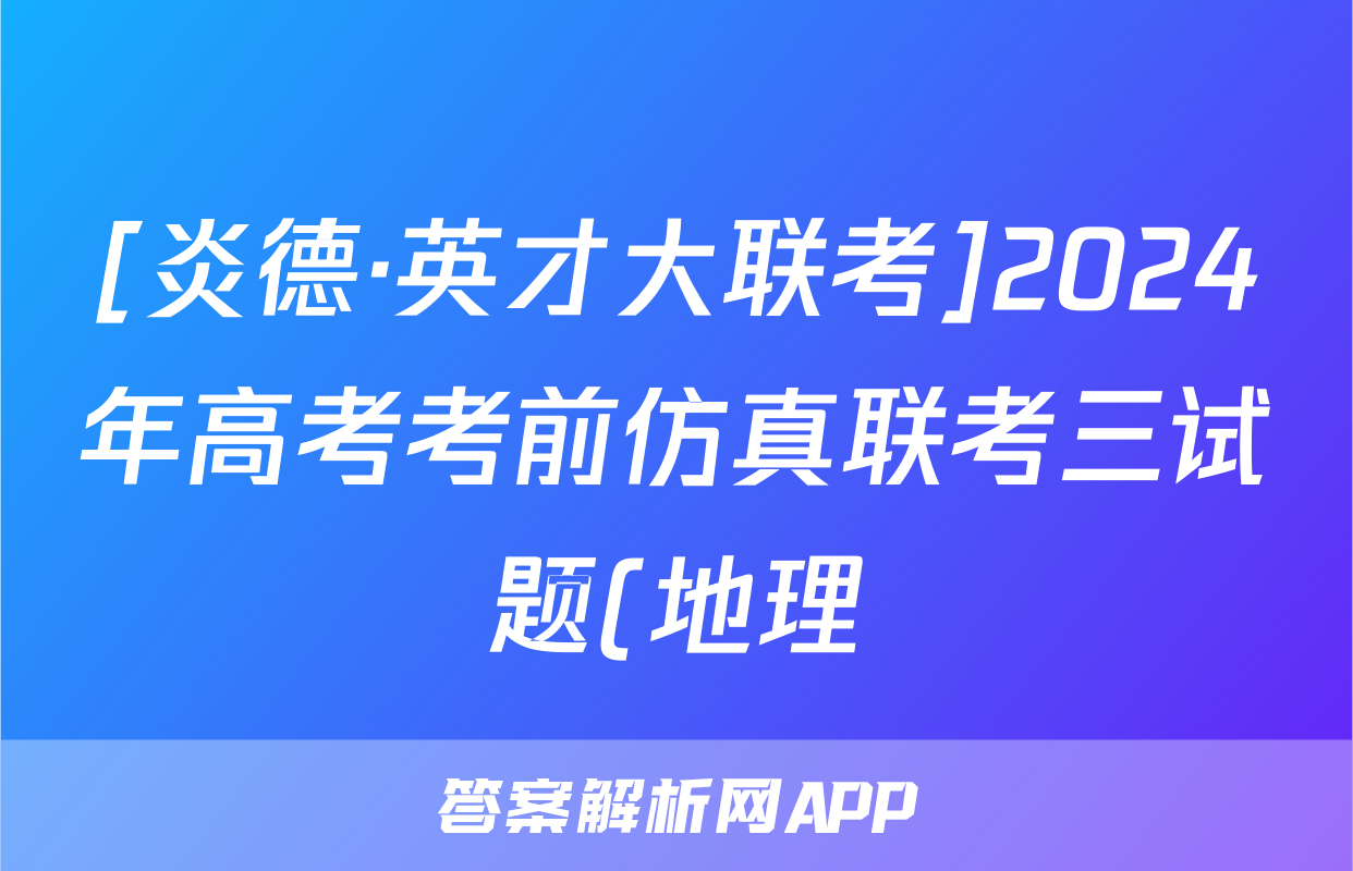 2、[炎德·英才大联考]2024年高考考前仿真联考一答案(地理)