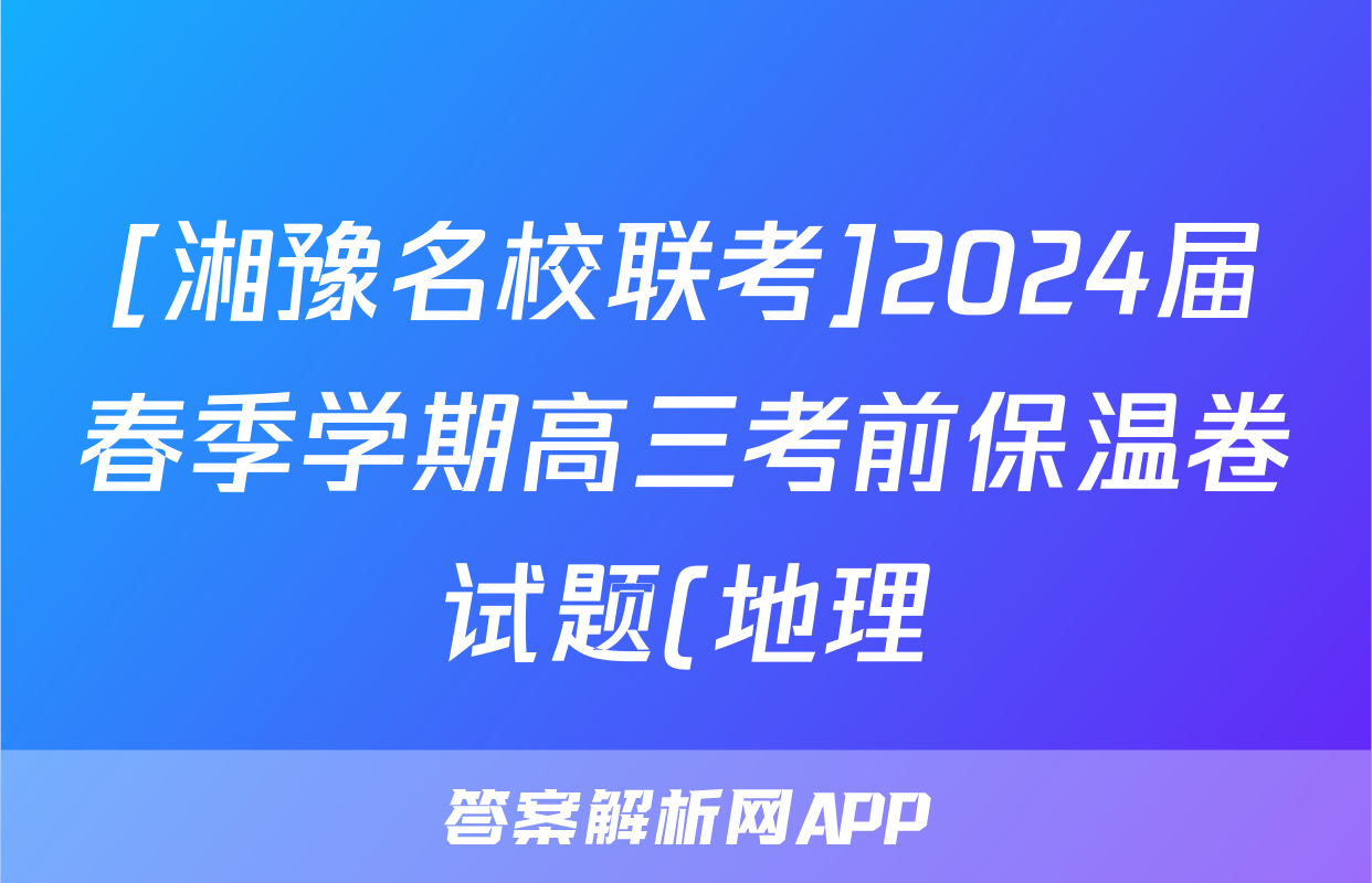1、湘豫名校联考2024年4月地理