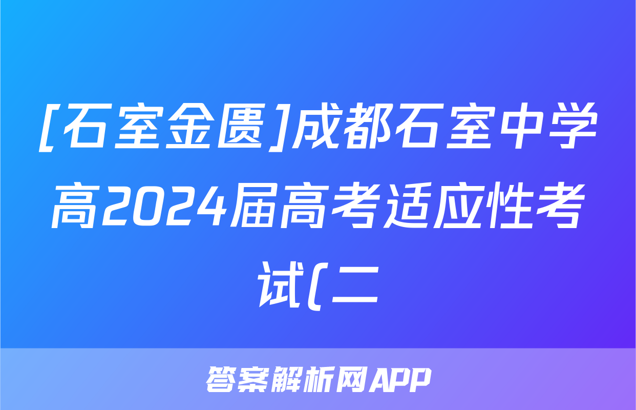 2、【热荐】石室金匮 2024届高考专家联测卷(二)化学x试卷