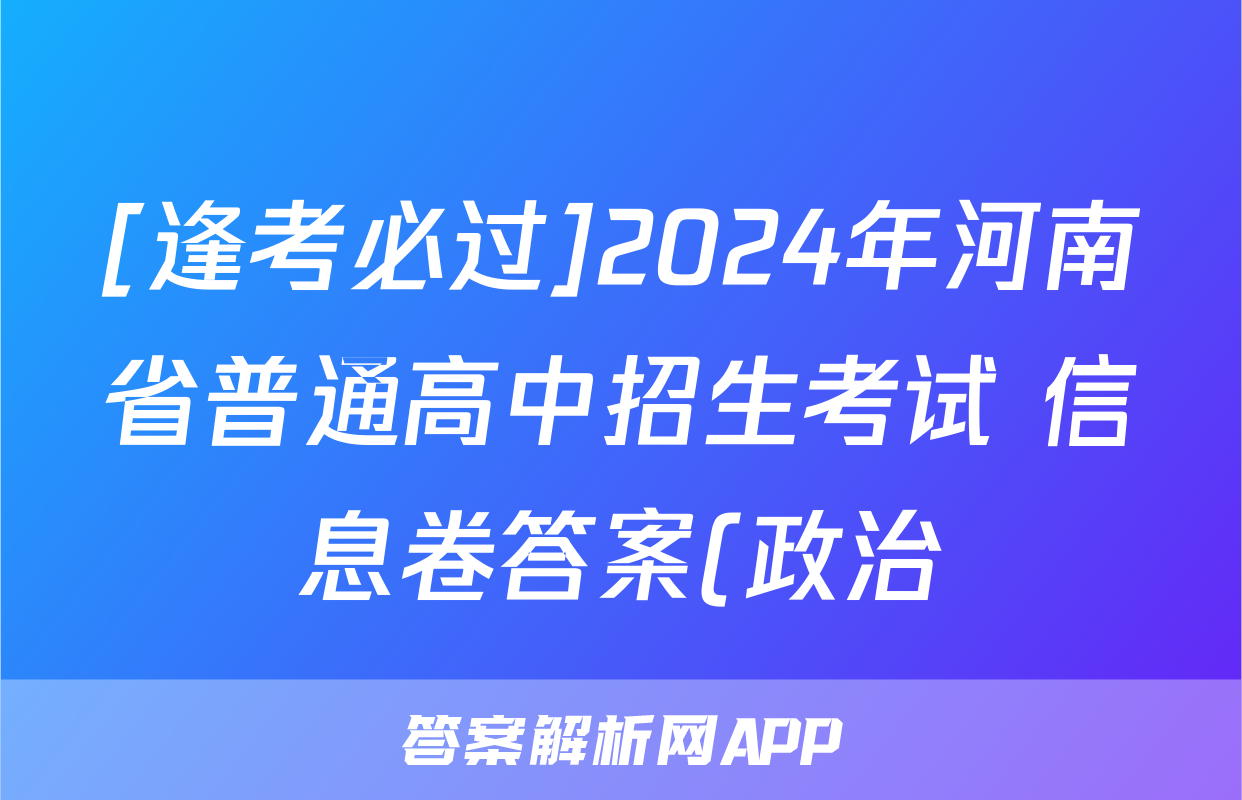 1、2024年河南省普通高中招生考试模拟试卷(经典二)政治答案