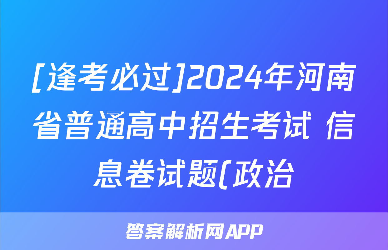 1、2024年河南省普通高中招生考试模拟试卷(经典二)政治试题